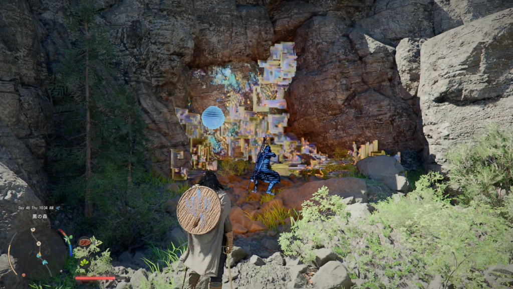 近づくとダメージがある光る岩なのでちゃんと道を抜けてきた場合は迷わずたどり着けるはず。