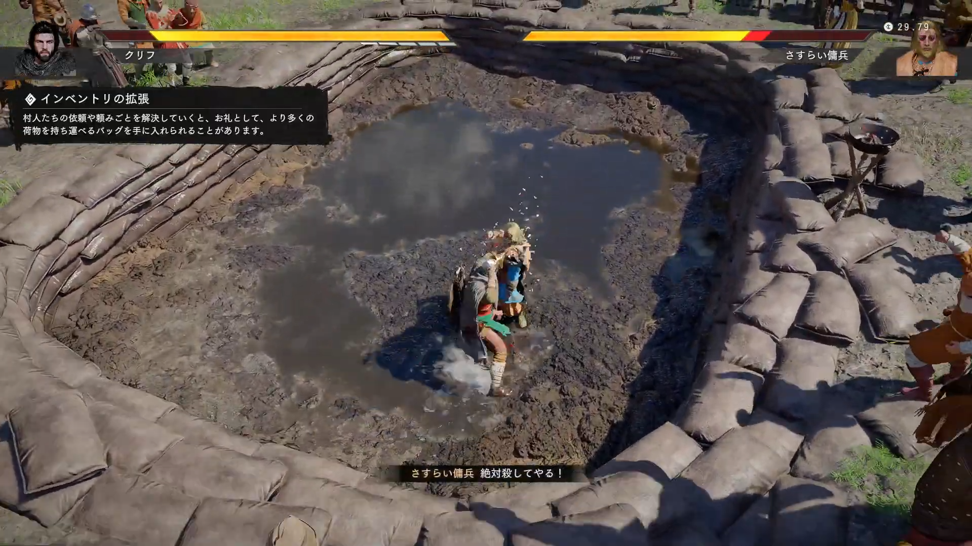 1 狼の丘キャンプに戻る 2 アンドリューに話しかける 3 馬に乗ってドウェインに追従 - 2闘技場で素手決闘に3回勝利