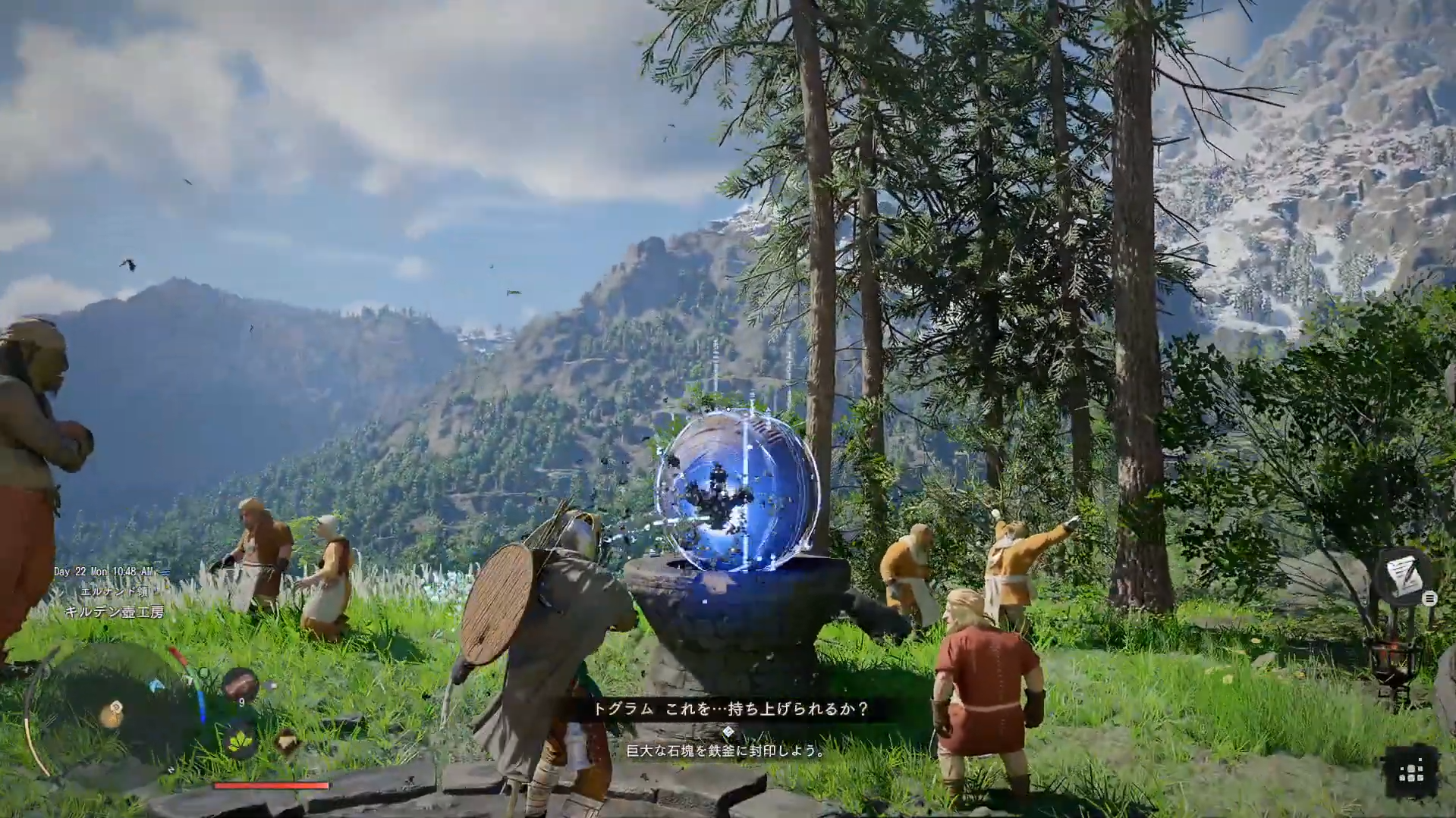 1 工房の職人トグラムに話しかける 2 近くにある巨大な石塊に摂理の力を使用(Lスティック押し込み) 3 鉄釜に封印する(Yボタン)