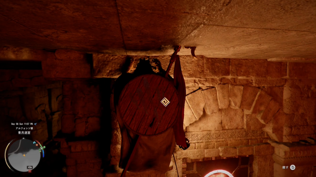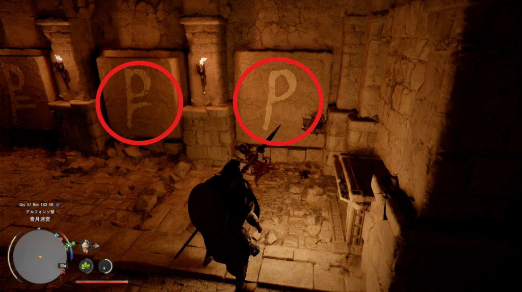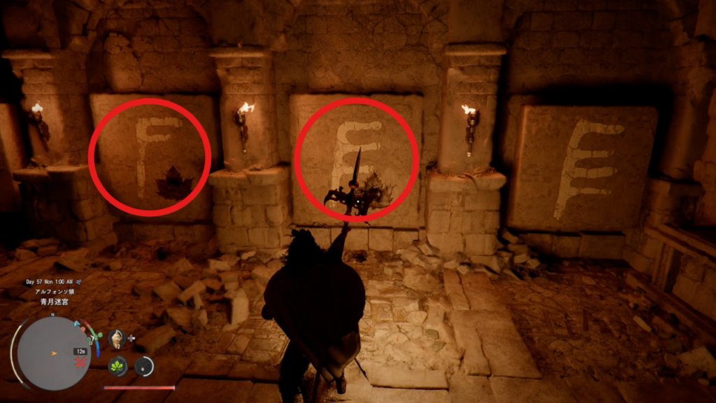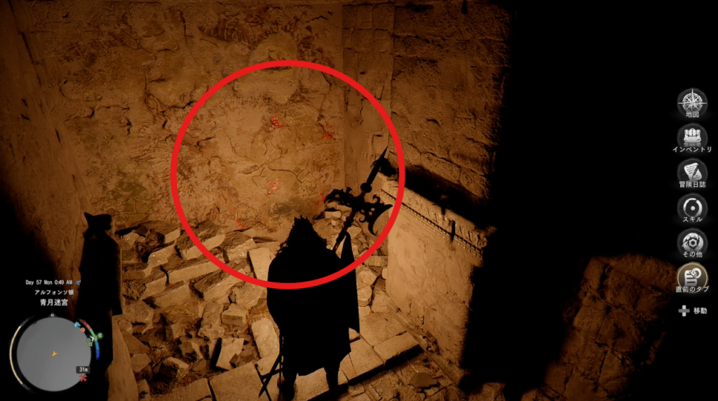 1 エルナンド南西のフォニエール牧場へ向かう 2 牧場内にある小屋を見つけて中に入る 3 小屋内の梯子を降りて青月迷宮に入る
