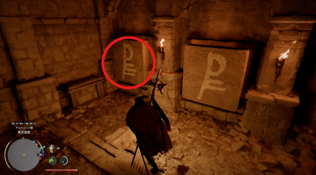 炎のトラップでは壁伝いに回避すると回避しやすいです。 2 突き当り左側の壁にあるレバーを引いて先に進む