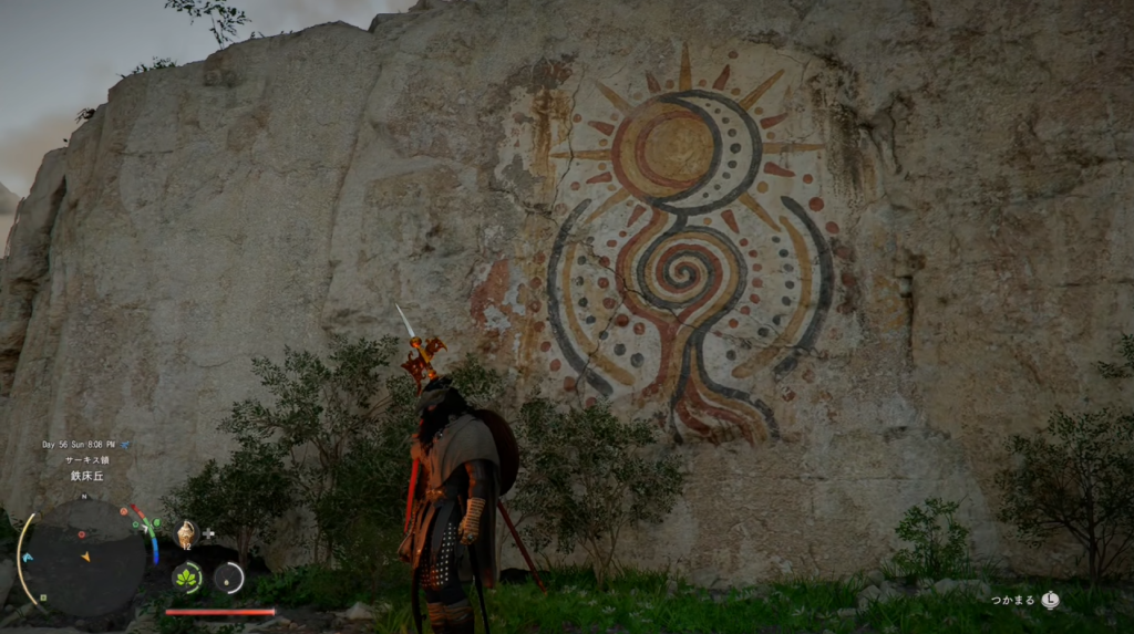 現地にある崖の壁に円盤と同じイラストが描かれています。 - 33つの円盤を合わせてクリア