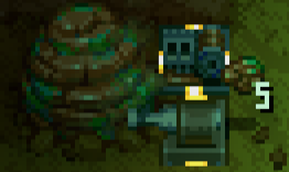 鉱石の塊1つに対して、ドリルは最大8台まで並べられます。 1台だと掘るスピードがかなり遅くてなかなか進まないので、素材が集まり次第どんどん増設しちゃいましょう。