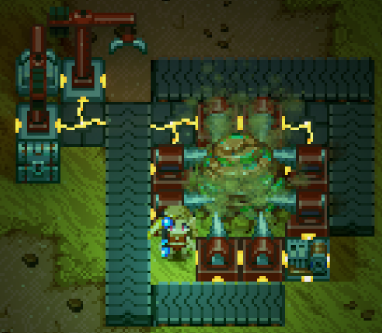 - 鉱石の塊に向けてドリルを置く。ドリルに直接隣接するように発電機かレバーを設置。これだけで勝手に掘り始めてくれます。