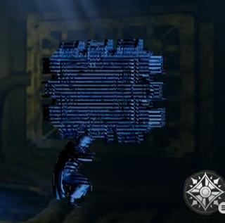 ▲青いキューブ(左)と石像(右)。摂理の力で掴んで石像の上へ
