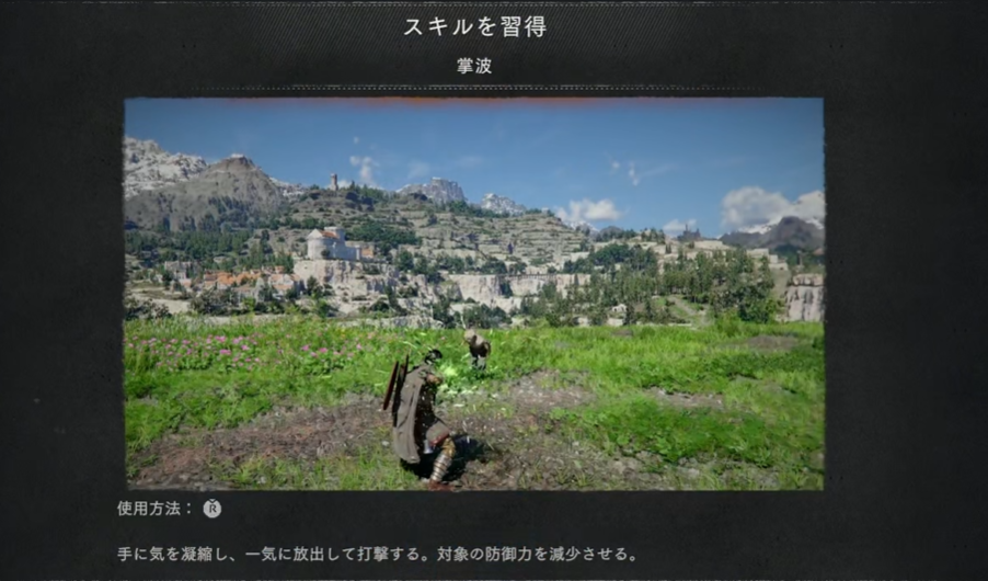 ▲掌波のスキル説明画面。使用方法は右スティック押し込み