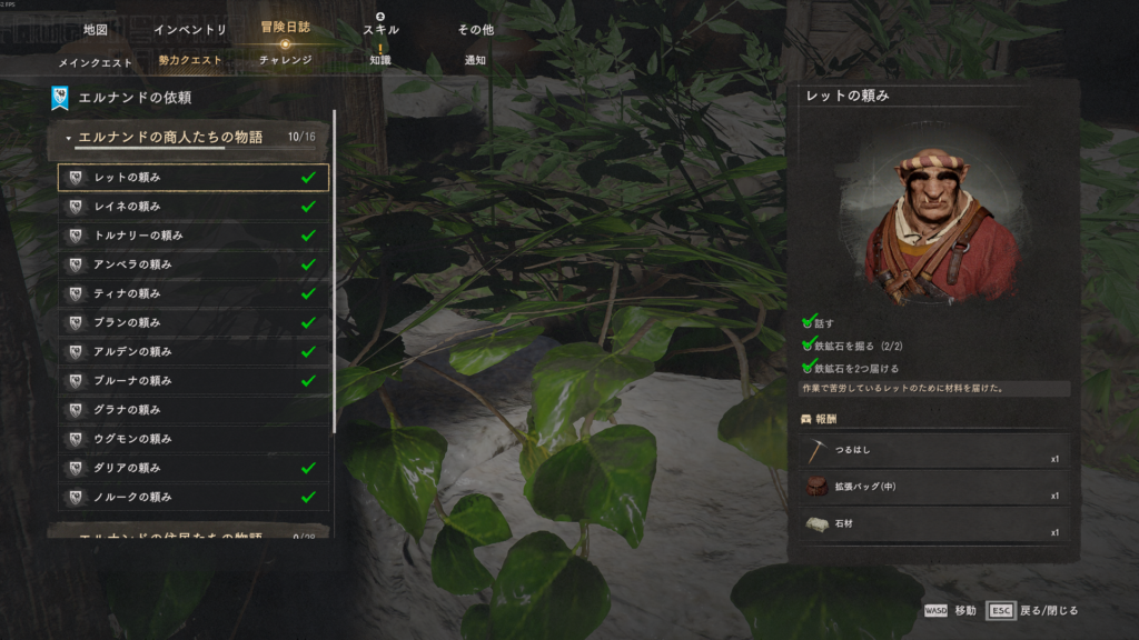 1. クエスト一覧画面を開き、報酬に「拡張バッグ」が含まれているか確認する。