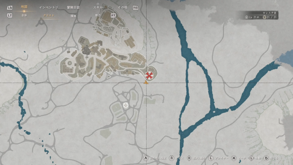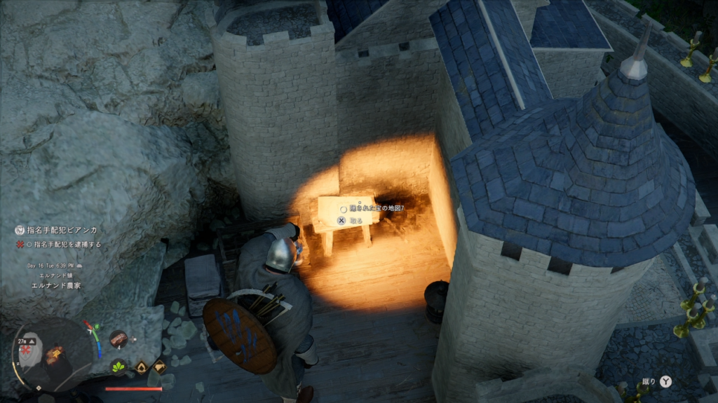 - 付近にある台の上にある「隠された宝の地図7」を調べる。