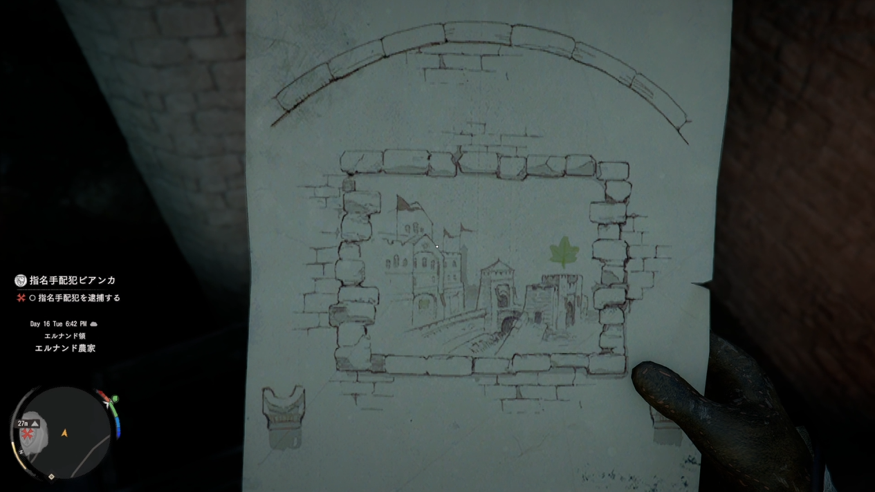 入手した地図をインベントリから使用すると、宝の場所を示す絵が表示されます。
