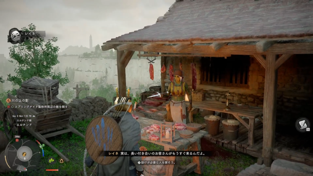 - 店先にいるNPC「レイネ」に直接話しかけてクエストを受注する。