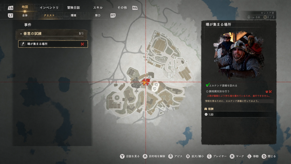 | クエストが進まない | クエストマークに鍵アイコンが出ている | 酒場の外でしばらく行動する |