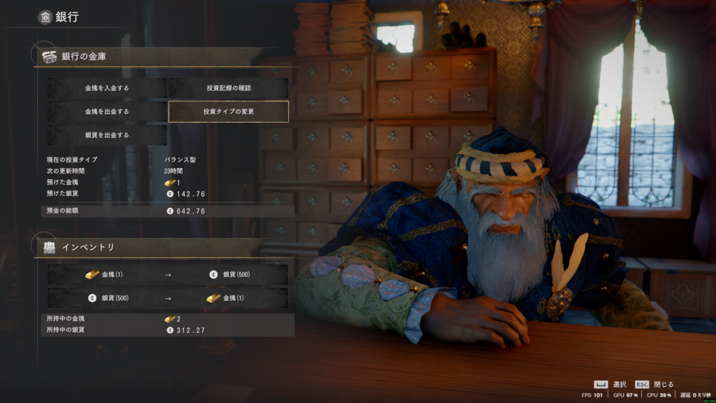 銀行投資金塊・開設銀貨100枚放置でも稼げる