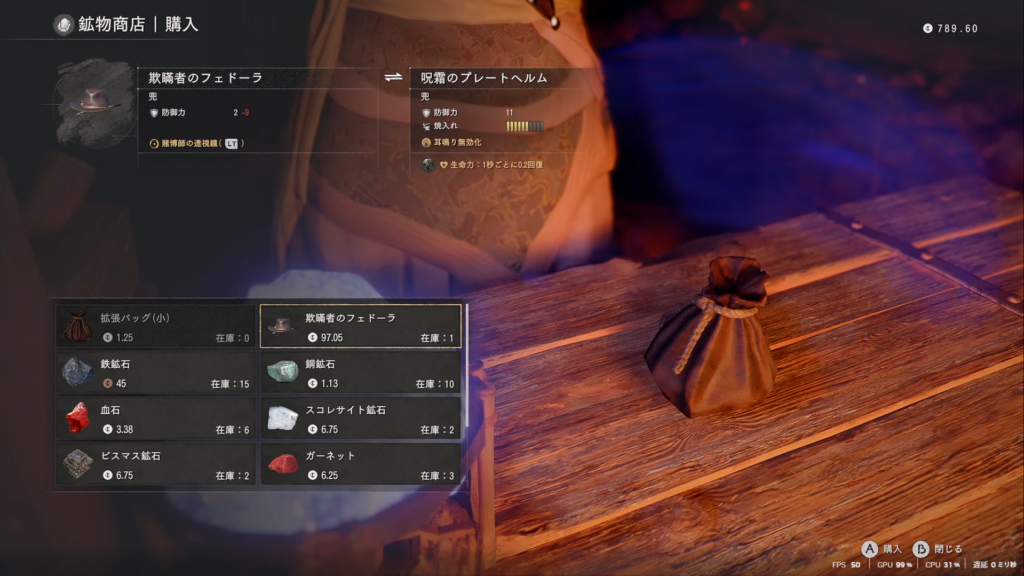 ショップでの売却価格は190銀ですが、後述する銀行で両替すれば500銀になります。