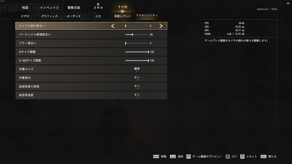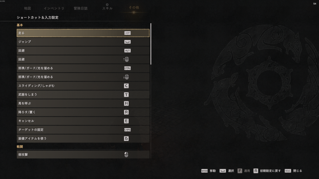 • キーボード・マウス環境でプレイ中の場合は「ショートカット&入力設定」から変更可能です。