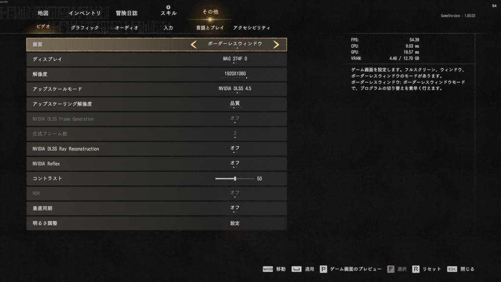 私と同じようにRTX 3000番台を使っている方は、基本はDLSS 4.5で綺麗な画質を楽しみ、ボス戦などアクションが激しい時だけFSR 3.1に切り替えるのが、一番ストレスが少ないかもしれません…!
