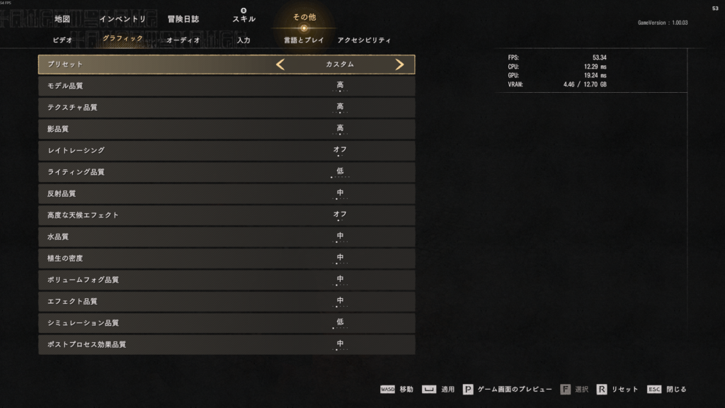この記事の設定は、以下のPC環境で実際にプレイして検証しています。